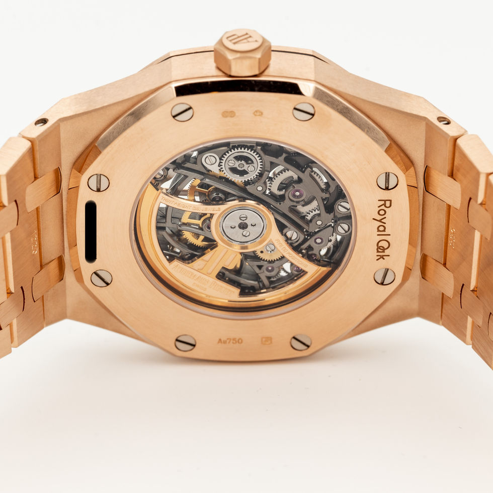 For sale is a new/unworn 2024 Audemars Piguet Royal Oak Double Balance Wheel Openworked 41mm, reference 15407OR.OO.1220OR.01 with the rose/pink gold case, bezel, and bracelet featuring pink gold accents around the mesmerizing skeleton dial. This watch has officially been discontinued by AP and will no longer be produced.